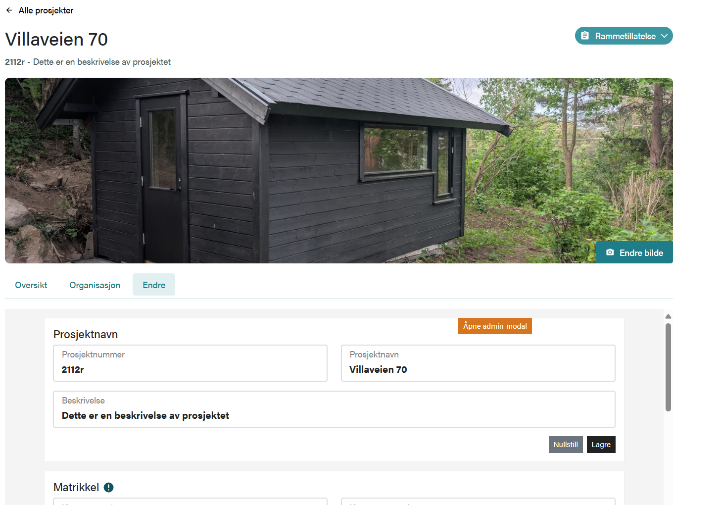 Andre endringer på et prosjekt kan gjøres under "Endre"