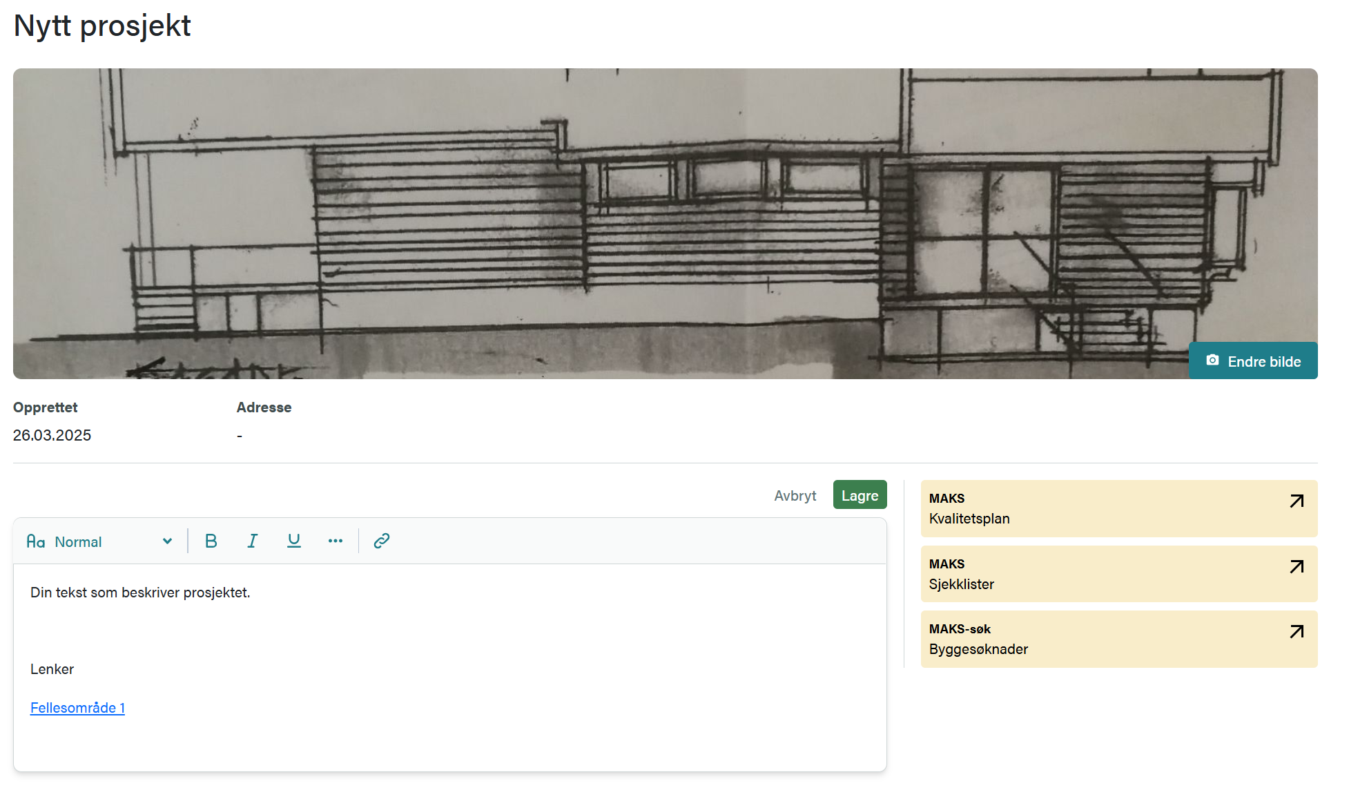 Det er også mulig å legge inn et bilde og en tekst til hvert prosjekt.